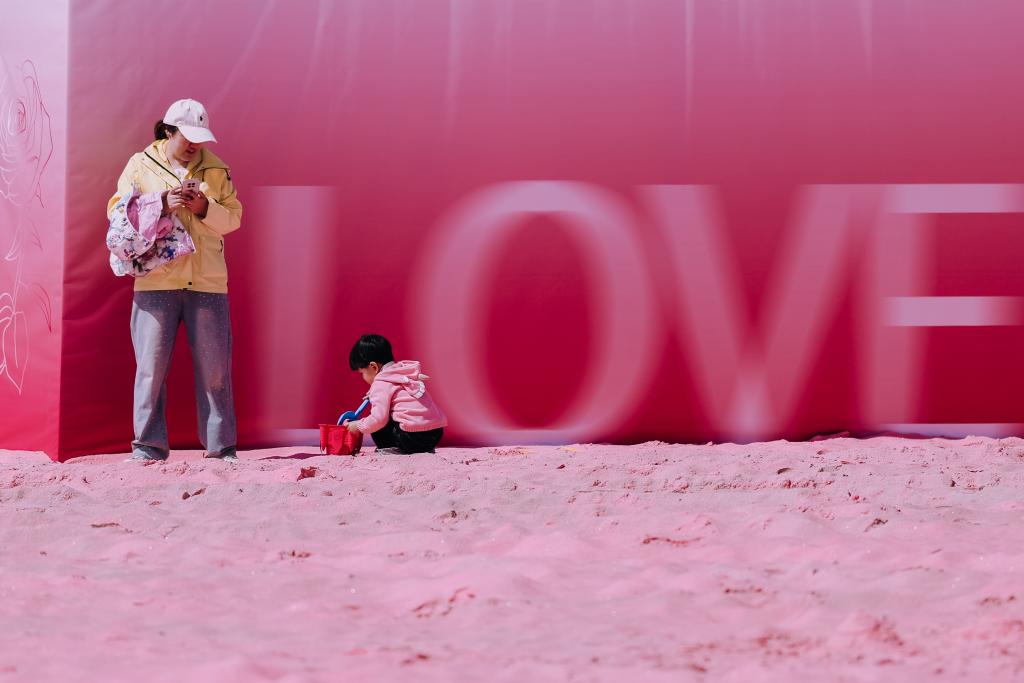 4月28日,参赛队伍在如皋水绘园风景区营造花境作品(无人机照片)。
