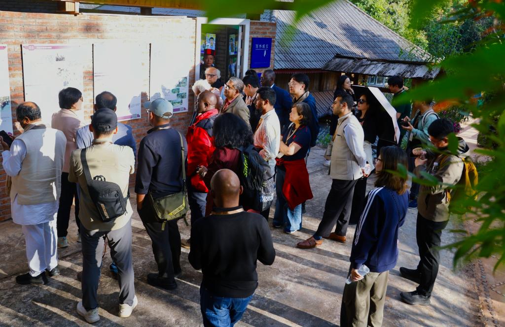 12月5日,中国与南亚东南亚乡村转型学术会议参会嘉宾在云南省景洪市大河边村调研。新华社发