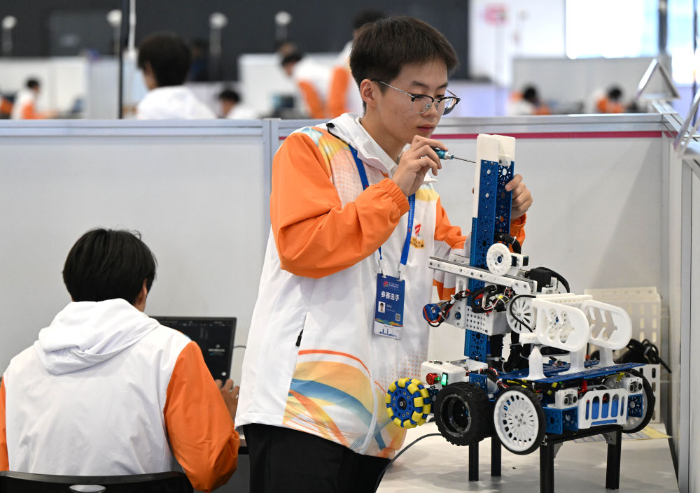 2025年9月20日,选手在河南郑州参加第三届全国技能大赛自主移动机器人项目比赛。2025年6月,国家部署开展大规模职业技能提升培训行动,提出从2025年到2027年底广泛开展职业技能提升培训。其中,聚焦高精尖产业与急需行业、就业重点群体等开展补贴性培训3000万人次以上。