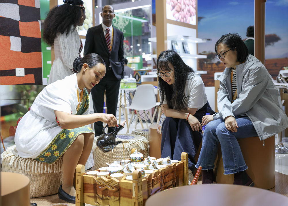 2025年11月7日,人们在第八届进博会国家展埃塞俄比亚馆品尝咖啡。本届进博会上,共有来自123个共建“一带一路”国家的企业参展,同比增长23.1%;来自最不发达国家的企业达163家,同比增长23.5%。2025年,中国继续优化外资结构,进一步保障外资企业获得公平待遇,营造市场化、法治化、国际化的一流营商环境。