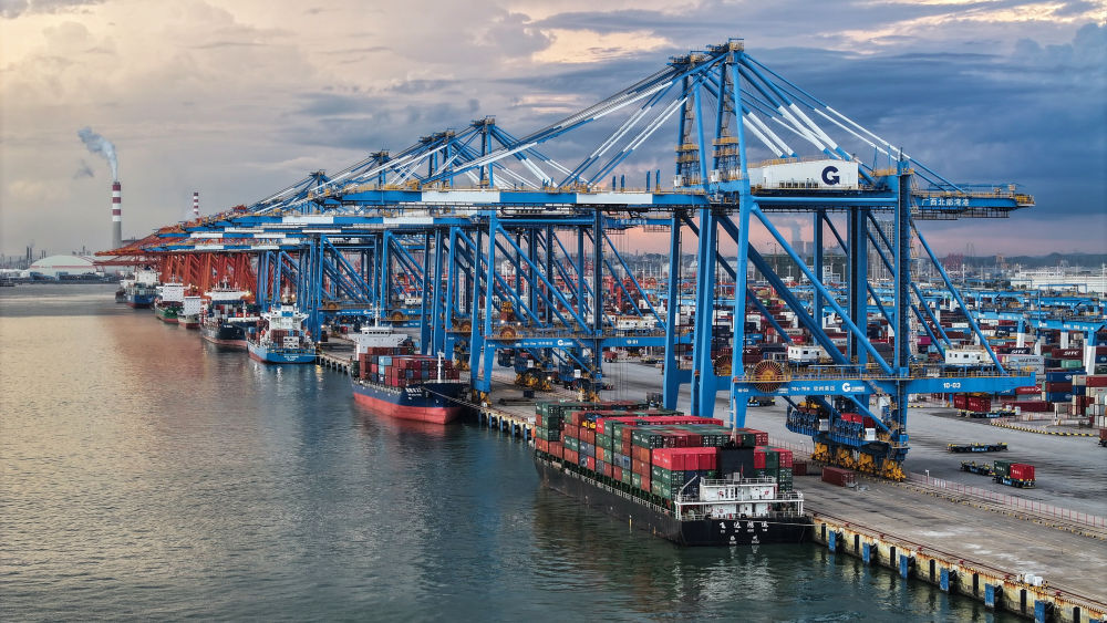 2025年9月16日,海轮在广西钦州港码头装卸货物。截至11月5日,西部陆海新通道班列全年已累计运输货物突破120万标箱,达121.4万标箱,同比增幅63.2%。西部陆海新通道已成为连接中国西部地区与东盟国家,推动区域协调发展、深化对外开放的重要物流通道。