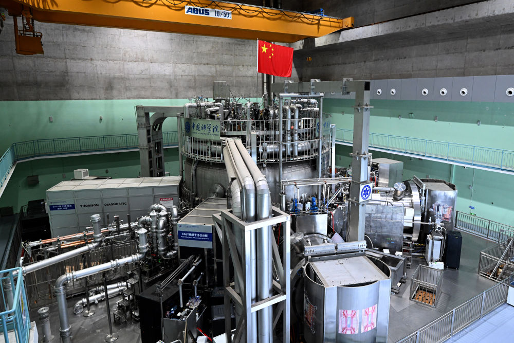 2025年1月15日拍摄的全超导托卡马克核聚变实验装置(EAST)。2025年1月,我国有“人造太阳”之称的全超导托卡马克核聚变实验装置(EAST)在安徽合肥创造新世界纪录,首次完成1亿摄氏度1066秒“高质量燃烧”,标志我国聚变能源研究实现从基础科学向工程实践的重大跨越。