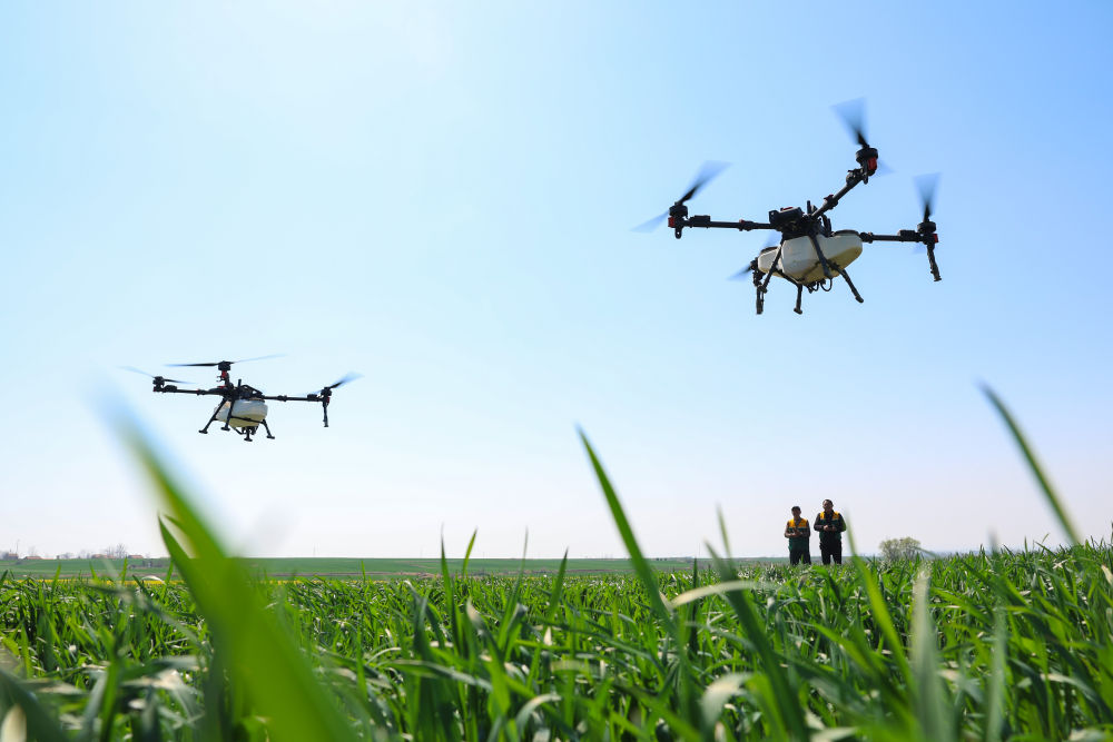 作为农业大省,湖北加力实施千亿斤粮食产能提升行动,以农业科技创新为引领,促进良田、良种、良机、良法集成增效,积极打造农业新质生产力。这是2025年3月20日,技术人员操作无人机在湖北省枣阳市七方镇大房村麦田进行植保作业。