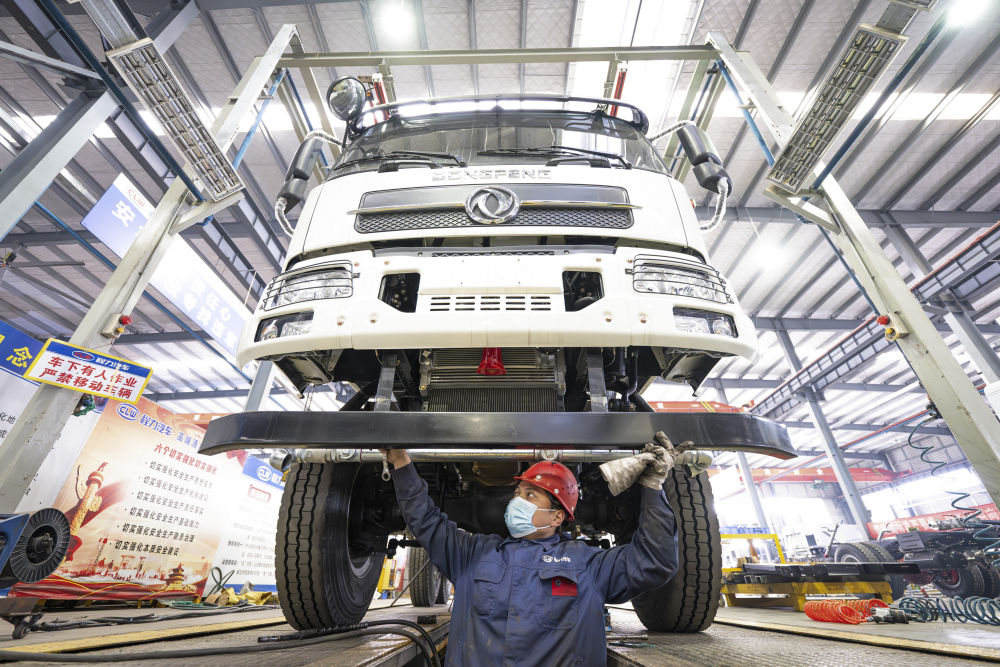 2022年,湖北提出打造万亿级汽车产业走廊。作为重要节点城市的随州市积极布局新能源专用汽车领域,以智能化作业、网联化管理、信息化运营推动产业改造升级。这是2025年2月13日,工人在位于随州的一家专用汽车企业生产线上作业。