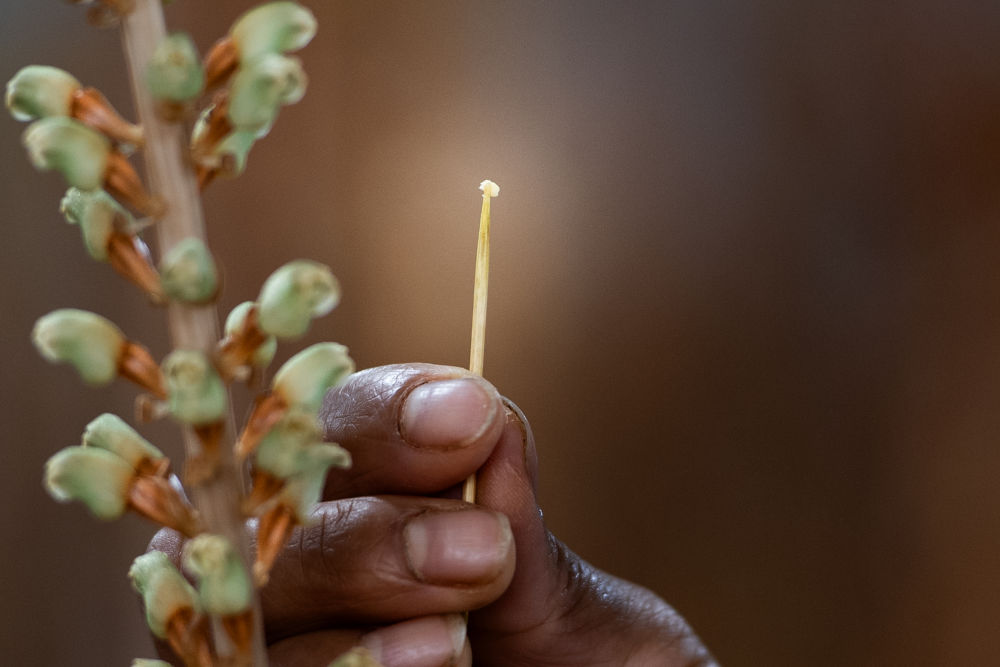 2024年4月8日,湖北神农架林区一家药材公司的工作人员在育种室给天麻授粉。地处秦巴山脉东端的湖北省神农架林区依托林下资源和省内科研优势,探索出林药产业模式,盘活林下“金库”。