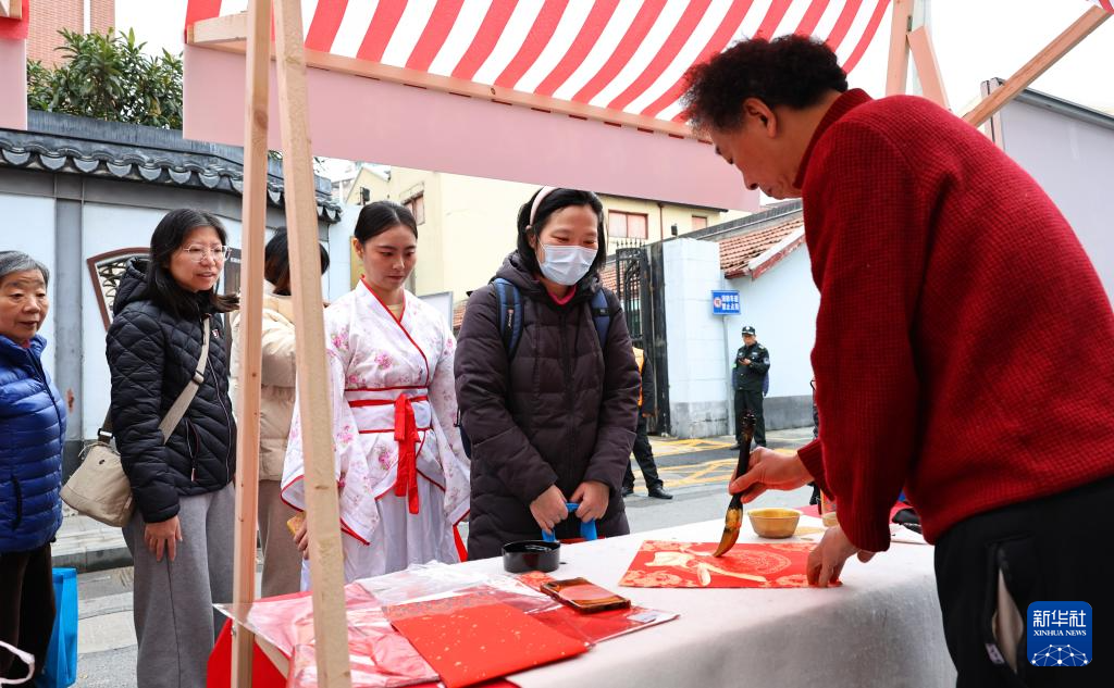 当日,“幸福万家”第二十届老西门春联大会在上海黄浦区老西门街道举行。市民游客不仅可以在现场领取书法家和社区书法爱好者们手书的春联福字,还能在非遗展示摊位前体验传统手工艺,蛇年春节味道渐浓。