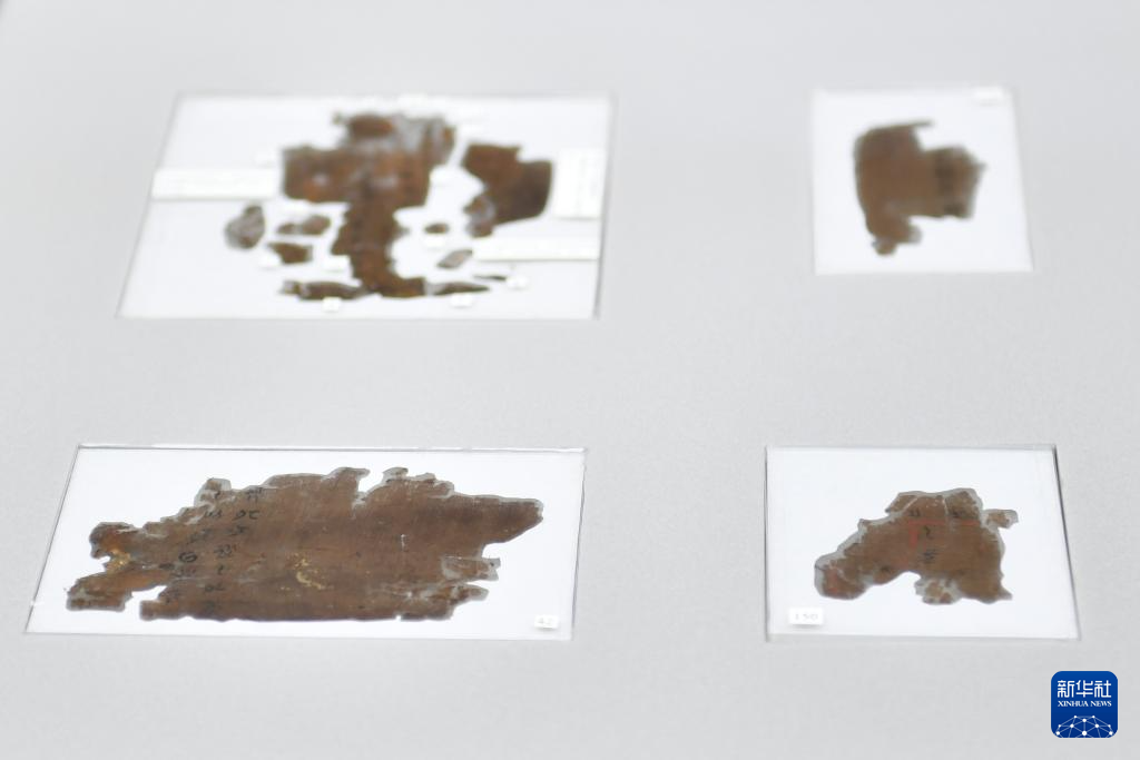 这是9月11日在湖南省博物馆拍摄的部分长沙子弹库战国帛书。