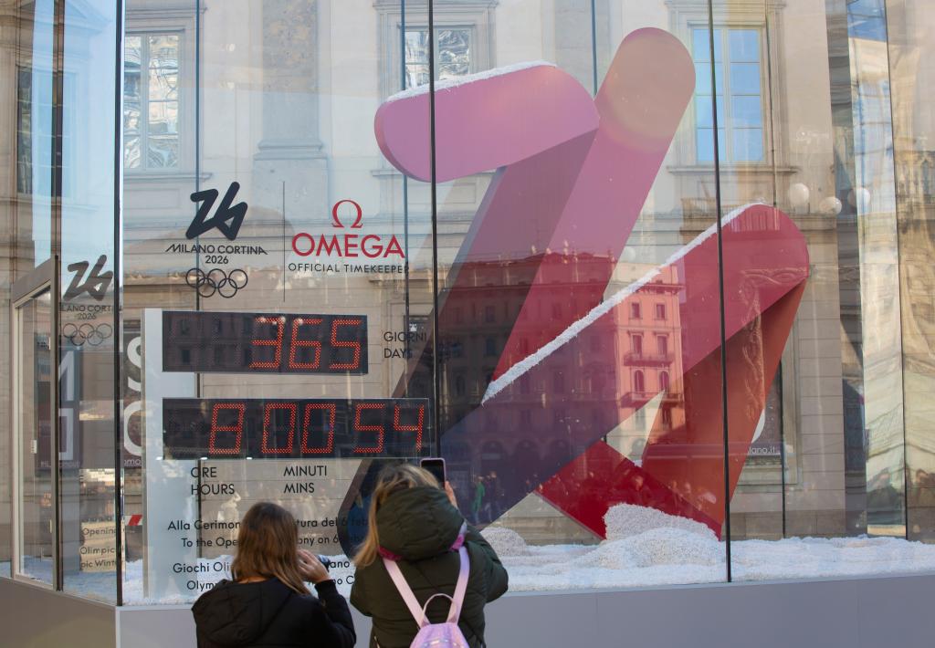 2月6日,在意大利米兰,人们在2026年米兰-科尔蒂纳丹佩佐冬奥会倒计时牌前拍照。新华社记者 李京 摄