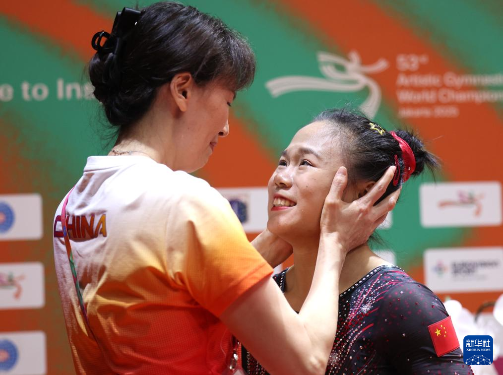 当日,在印度尼西亚雅加达举行的2025年国际体操联合会(FIG)竞技体操世锦赛女子平衡木决赛中,中国选手张清颖夺得冠军。