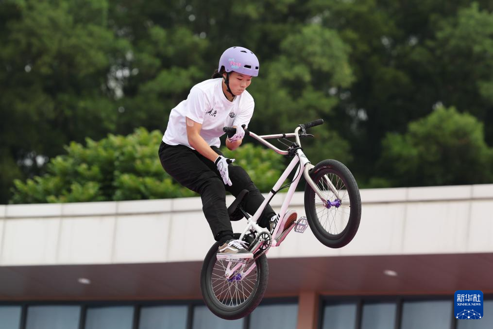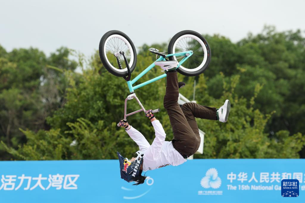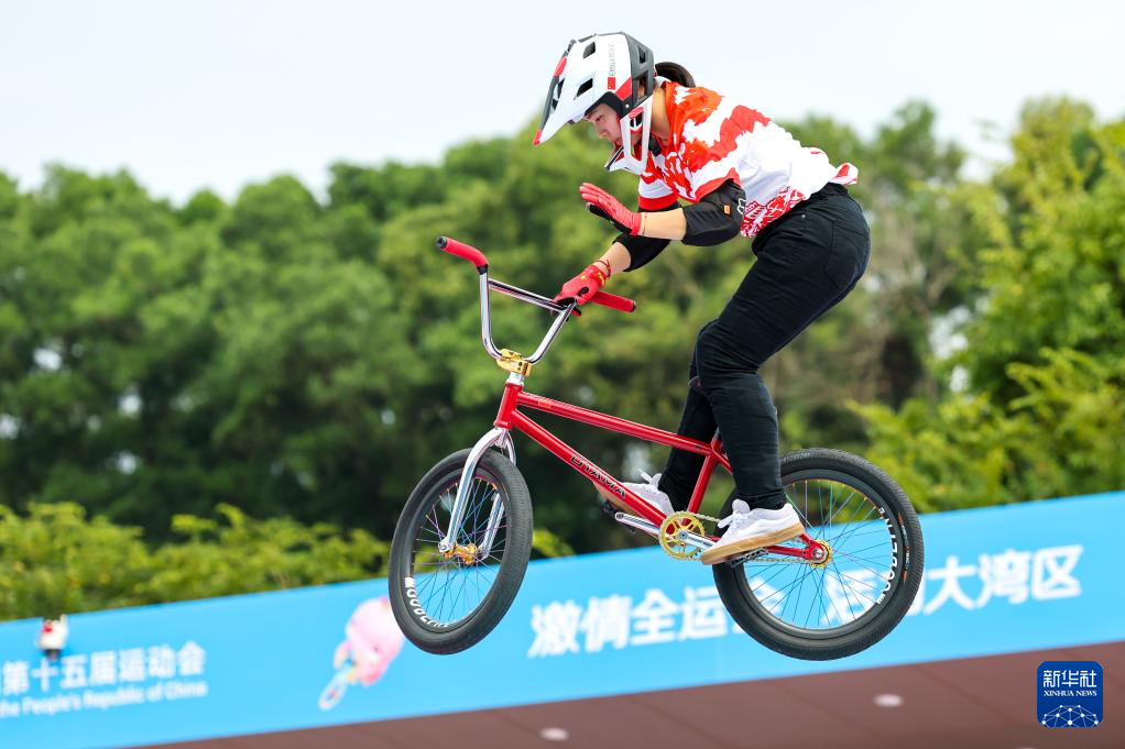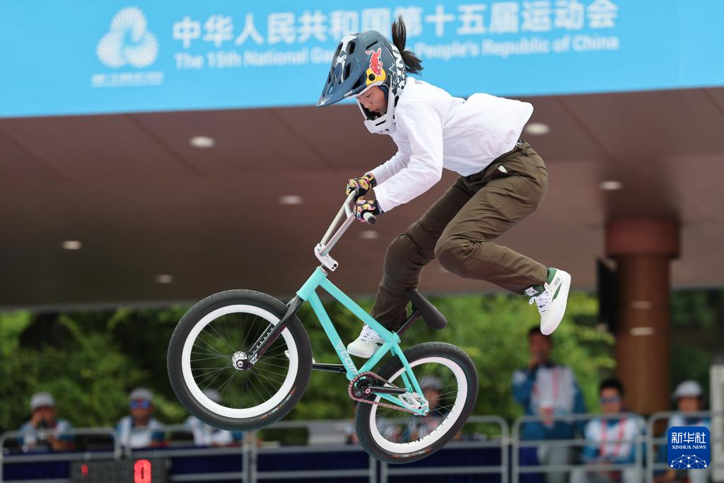 当日,第十五届全国运动会自由式小轮车女子公园赛决赛在深圳光明区虹桥公园举行。
