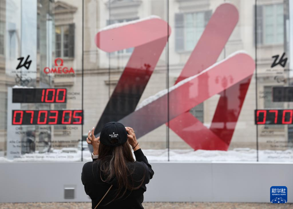 10月29日,在意大利米兰,市民拍摄米兰-科尔蒂纳冬奥会倒计时牌。