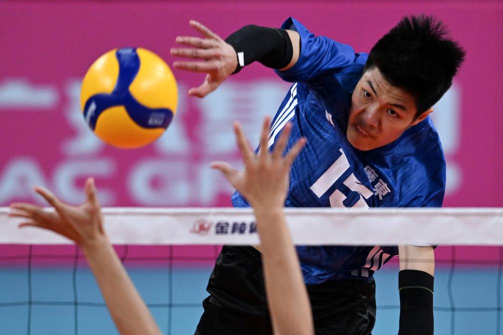 11月7日,广东队球员陈天源在比赛中扣球。新华社记者 周牧 摄