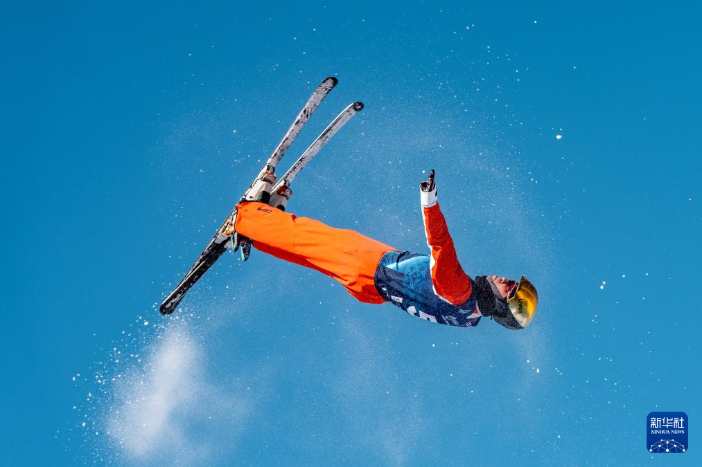 11月6日,自由式滑雪空中技巧运动员齐广璞在进行技术训练。
