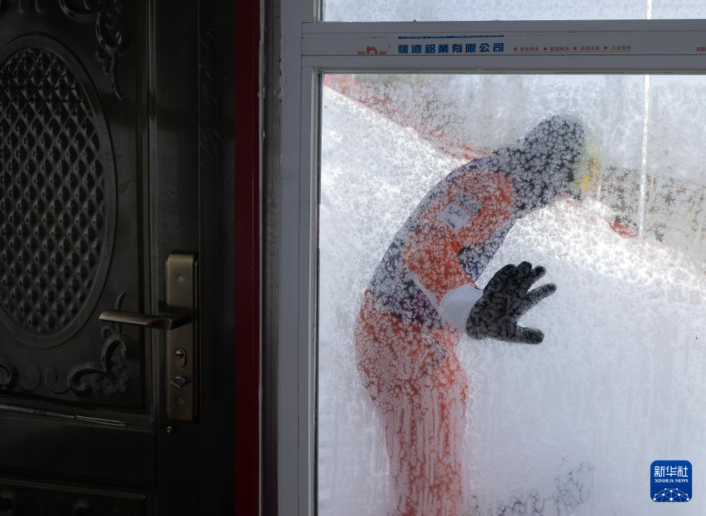 11月7日,自由式滑雪空中技巧国家集训队队员李天马在训练间隙来到雪场的小屋里取暖。