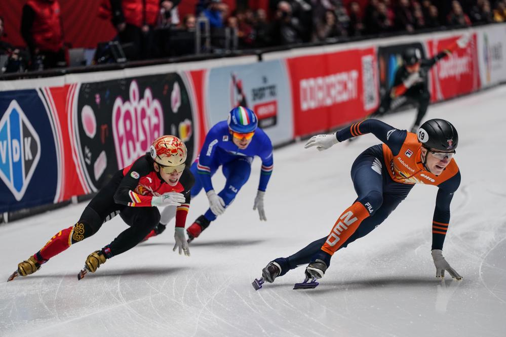 男子5000米接力决赛在中国、意大利、荷兰和匈牙利队之间展开。中国队派出刘少昂、刘少林、林孝埈、张柏浩上场,最终滑出6分48秒724,夺得银牌。荷兰队获得冠军,意大利队位列第三。这是本赛季中国队在世巡赛上拿到的第三枚男子接力银牌。