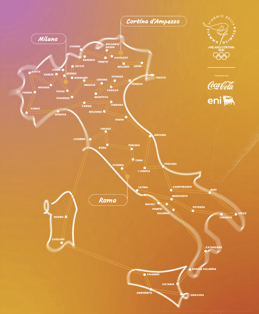 米兰冬奥会火炬传递路线图。图源:米兰冬奥组委