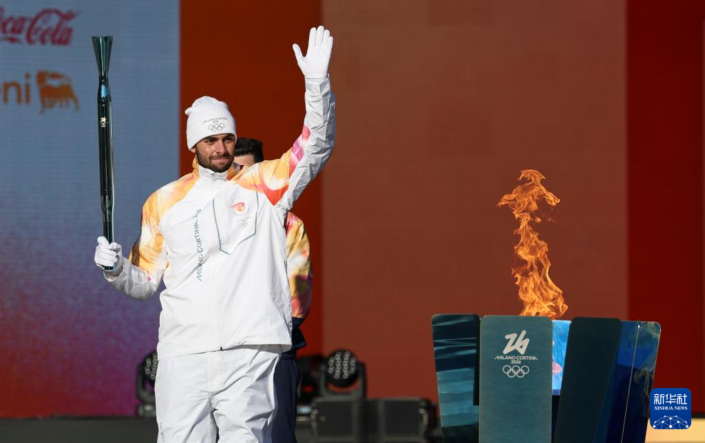 12月6日,意大利本土第一棒火炬手、意大利游泳运动员帕尔特里涅里点燃火炬。
