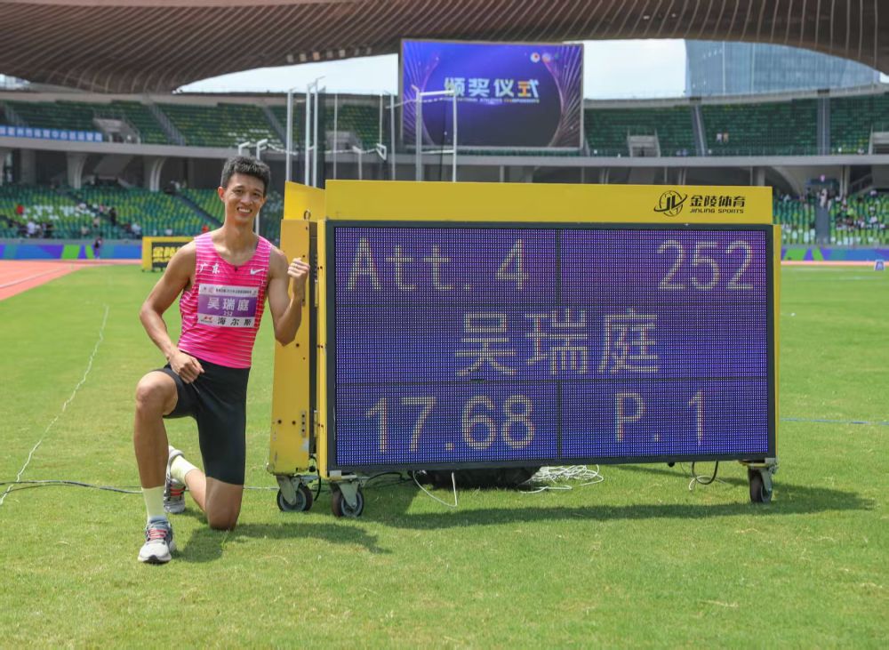 八月的全国锦标赛上,吴瑞庭的前两跳还并不敢完全发力,但第二跳便已经跳出了17米41,距离自己2019年跳出的个人最好成绩仅差6厘米。到了第三跳,他感觉“没有那么疼了”,于是“完全展现出了自己的技术特点”,突破也随之到来。