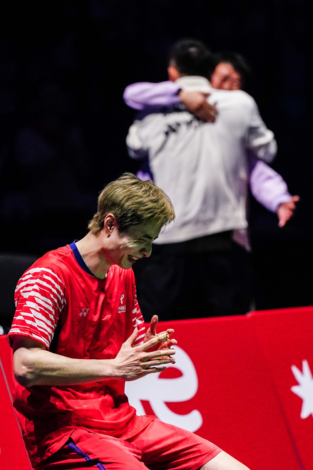 ↑8月31日,石宇奇在2025年世界羽毛球锦标赛男子单打决赛后跪地而泣。