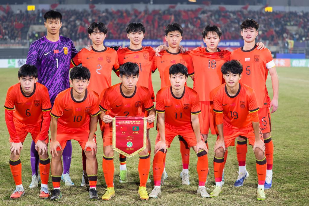 11月30日,中国队首发球员在赛前合影。当日,在重庆举行的2026亚足联U17亚洲杯预选赛小组赛中,中国队4比0战胜孟加拉国队,以5场连胜占据小组第一,成功获得2026年U17亚洲杯决赛阶段的比赛资格。 新华社记者 黄伟 摄