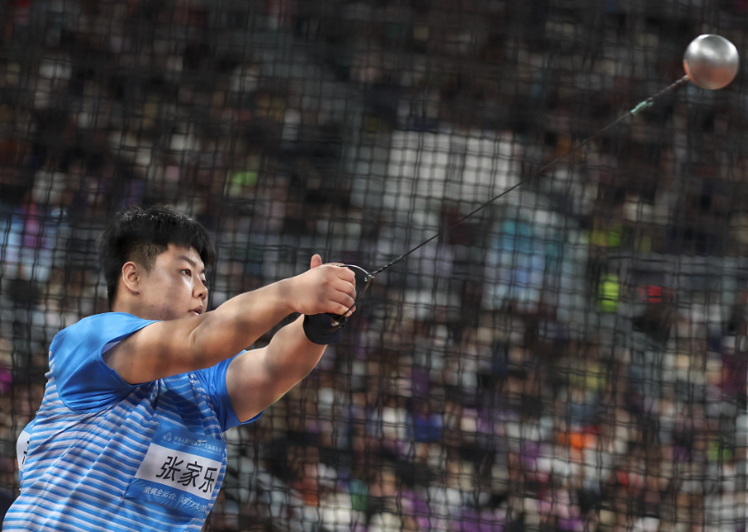 11月20日,山东队选手张家乐在比赛中。她获得亚军。当日,第十五届全国运动会田径项目女子链球决赛在广州举行。新华社记者 江汉 摄