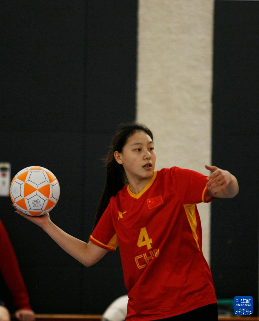 12月30日,郑州大学荷球队球员在与荷兰东南地区19岁以下青年荷球队的比赛中。