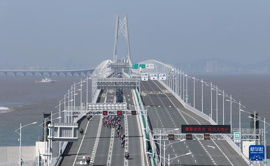 当日,第十五届全国运动会公路自行车男子个人赛决赛开赛,全程231.8公里,选手经过港珠澳大桥,跨越粤港澳三地。这是全运会历史上首次举办跨境比赛。