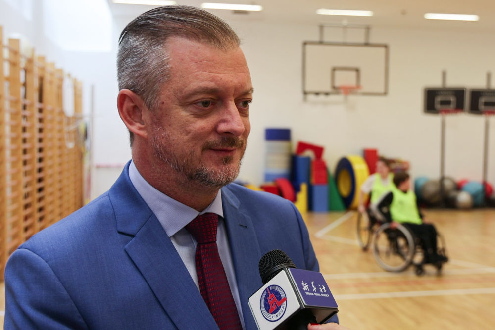 1月13日,国际残奥委会主席安德鲁·帕森斯在参观匈牙利康复治疗机构和残疾儿童体育中心时接受新华社记者采访。新华社发(弗尔季·奥蒂洛摄)