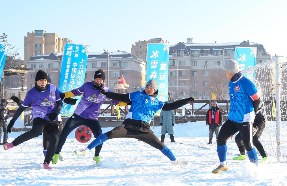 2025年12月27日,球员在比赛中。当日,“冰超”·第三届上合组织雪地足球赛中国区选拔赛暨伊春首届雪地足球超级联赛在伊春市伊美区开赛。新华社发(李佳星摄)