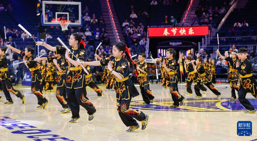 1月20日,演员在比赛中场休息时表演,庆祝即将到来的中国马年春节。