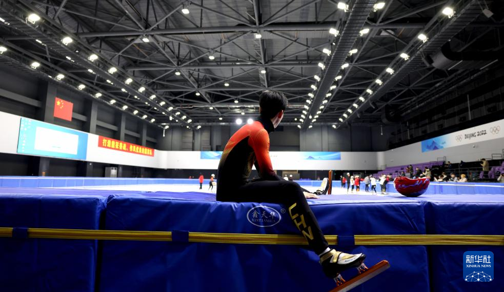 1月29日,中国短道速滑队选手孙龙在训练间隙。