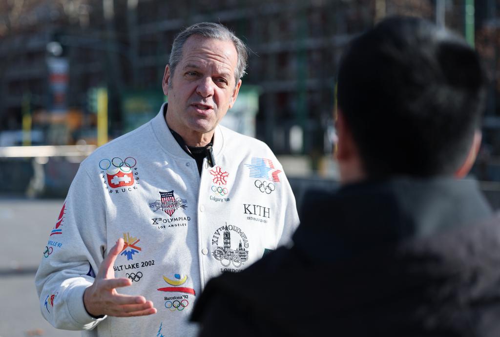 1月26日,米兰冬奥会开幕式创意团队负责人马尔科·巴利奇在意大利米兰的圣西罗体育场外接受新华社记者采访。米兰冬奥会开幕式将于2月6日在圣西罗体育场拉开帷幕。新华社记者 杜潇逸 摄
