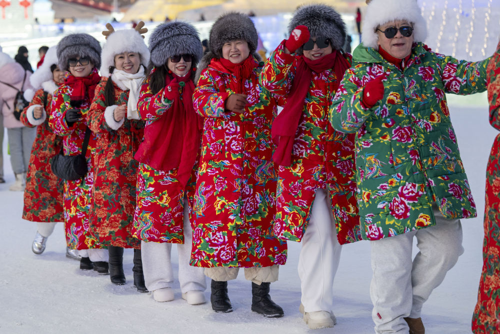 2026年1月5日,游客在哈尔滨冰雪大世界园区游览。