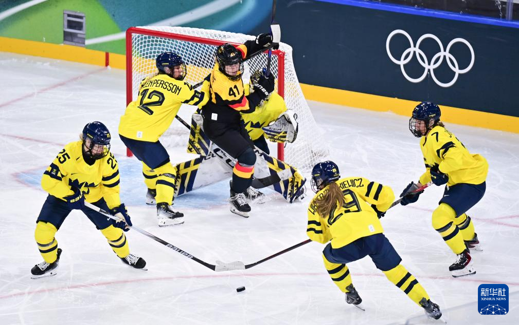 当地时间2月5日,在意大利米兰举行的米兰-科尔蒂纳冬奥会冰球项目女子小组赛B组比赛中,瑞典队4比1战胜德国队。
