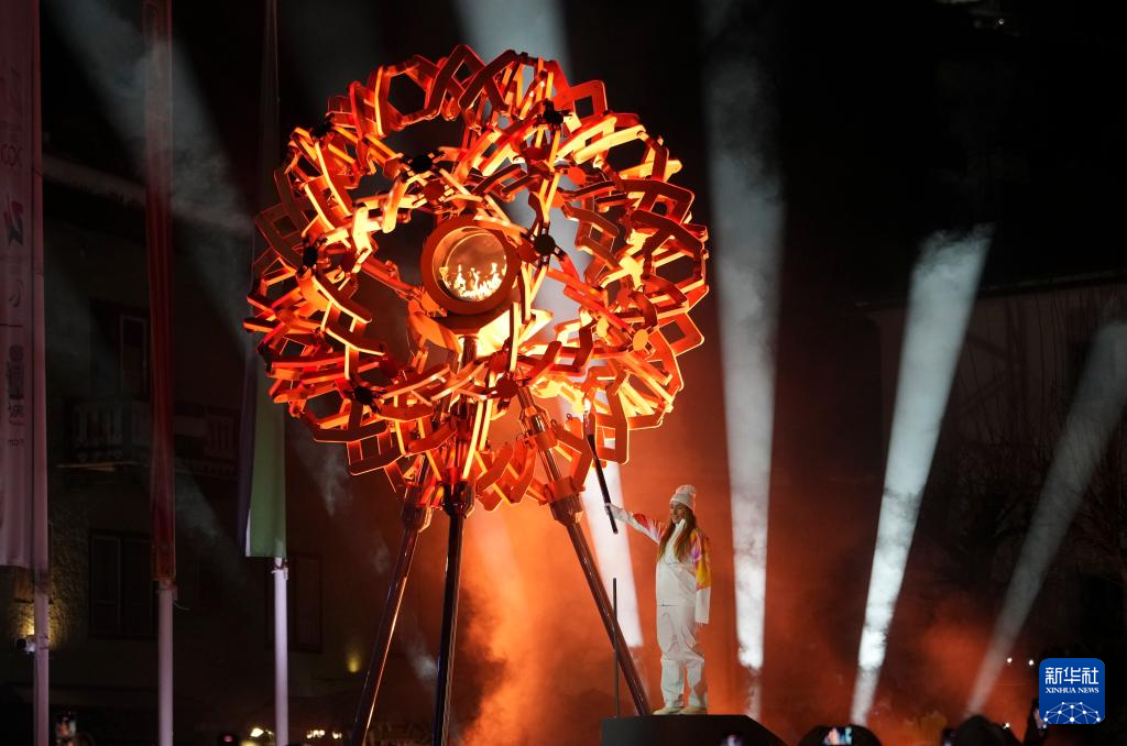 2月6日,在科尔蒂纳迪博纳广场,火炬手点燃主火炬。