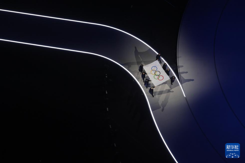 2月6日,奥林匹克会旗在开幕式上入场。