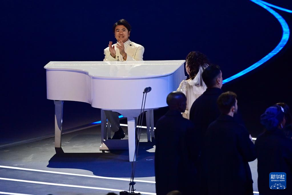 2月6日,中国钢琴家郎朗在开幕式上。