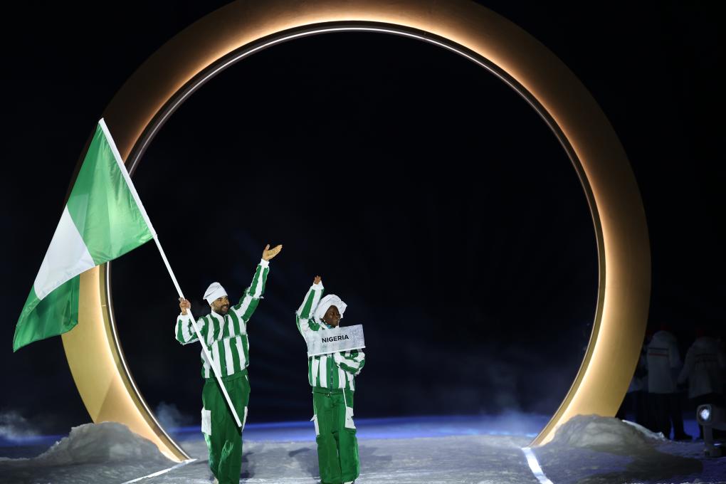 2月6日,尼日利亚体育代表团参加入场仪式。新华社记者 黄伟 摄