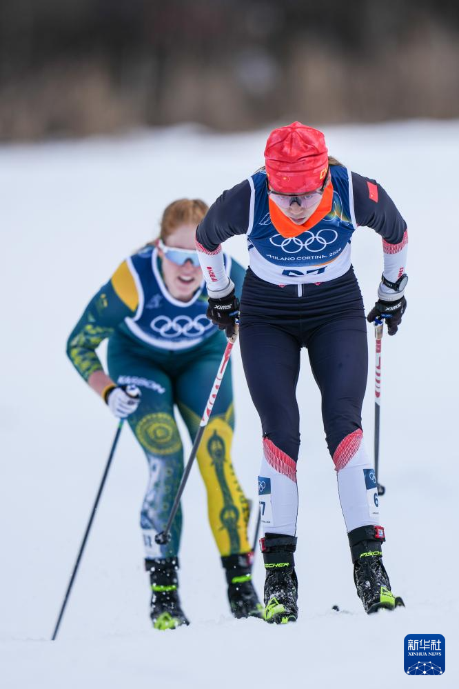 当地时间2月7日,米兰-科尔蒂纳冬奥会越野滑雪女子双追逐(10公里传统技术+10公里自由技术)比赛在意大利泰塞罗举行。