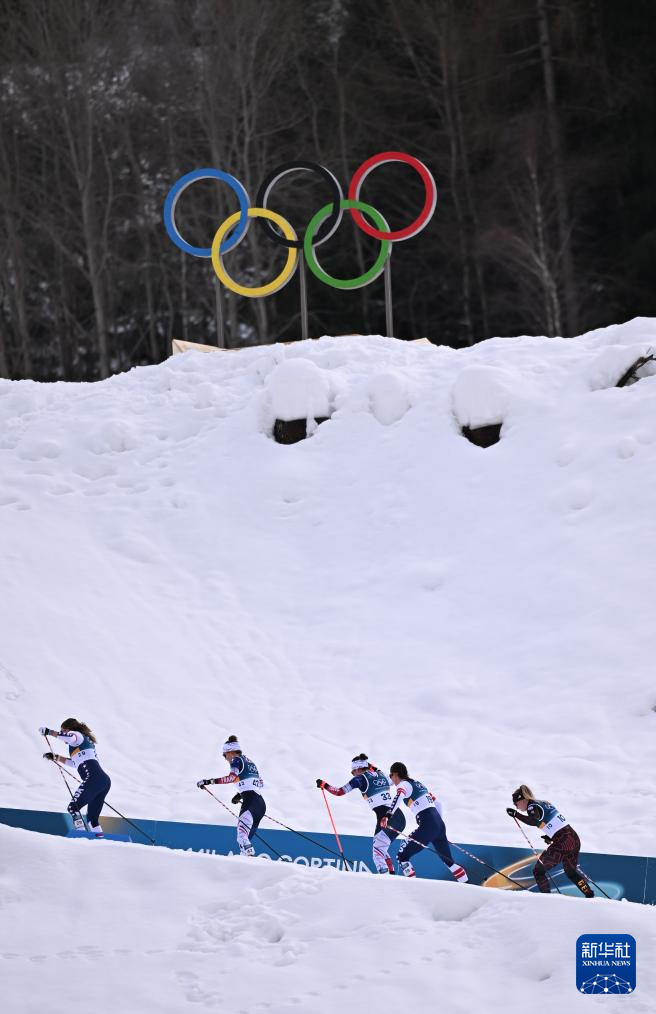 当地时间2月7日,米兰-科尔蒂纳冬奥会越野滑雪女子双追逐(10公里传统技术+10公里自由技术)比赛在意大利泰塞罗举行。