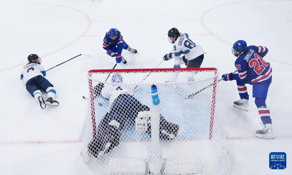 当地时间2月7日,在意大利米兰举行的米兰-科尔蒂纳冬奥会冰球项目女子小组赛A组比赛中,美国队5比0战胜芬兰队。
