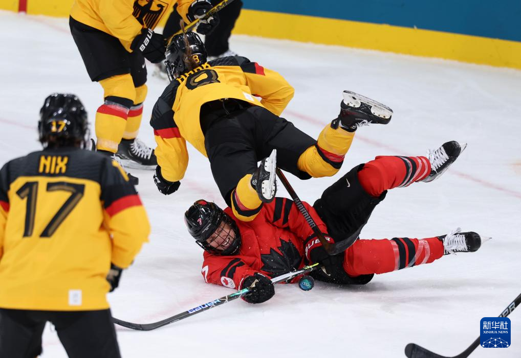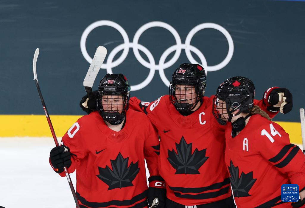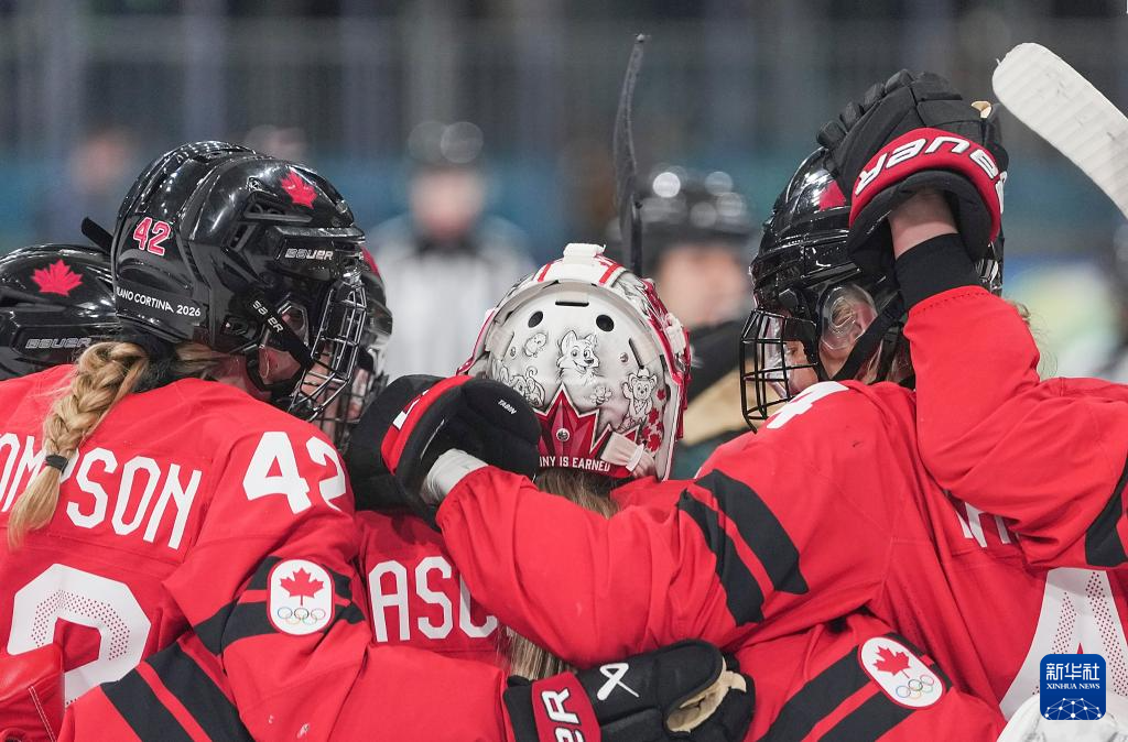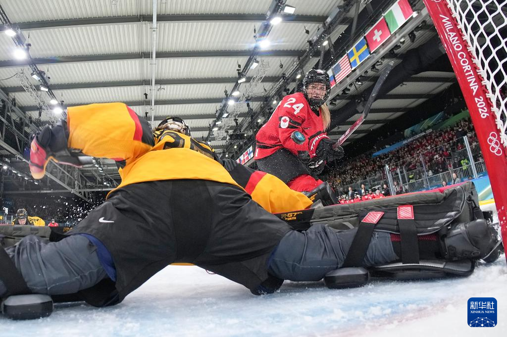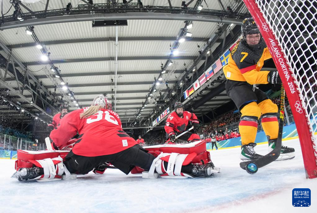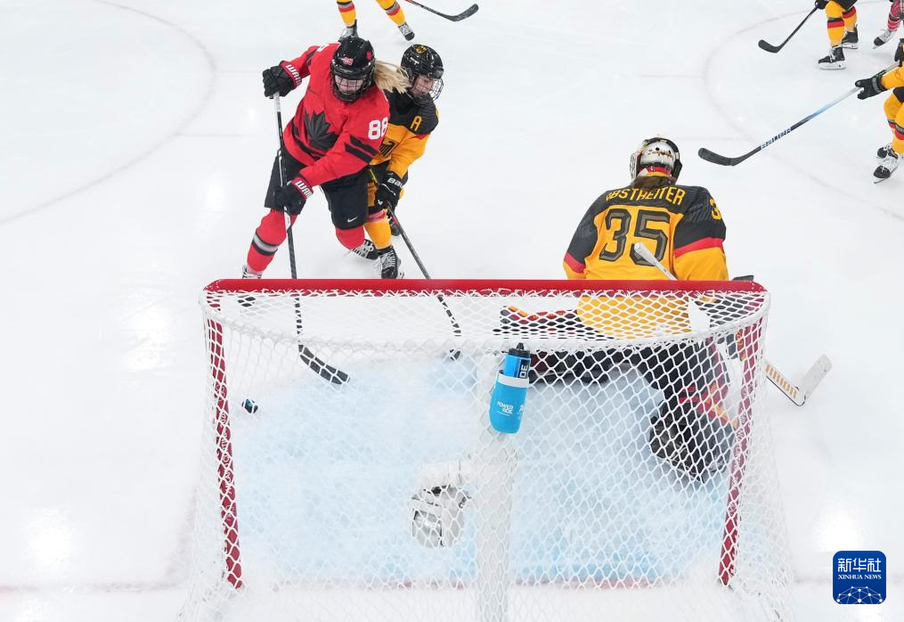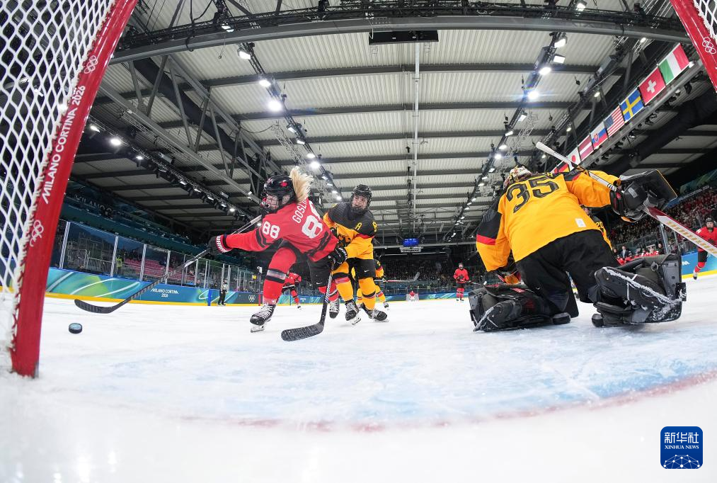 当地时间2月14日,在意大利米兰举行的米兰-科尔蒂纳冬奥会冰球项目女子四分之一决赛中,加拿大队5比1战胜德国队。