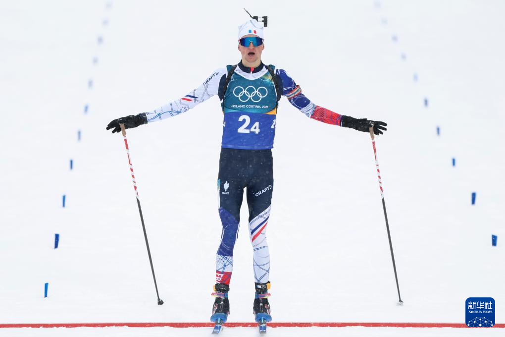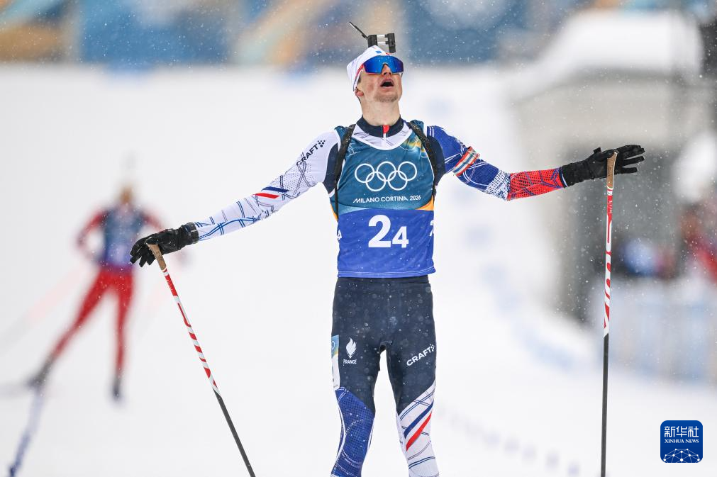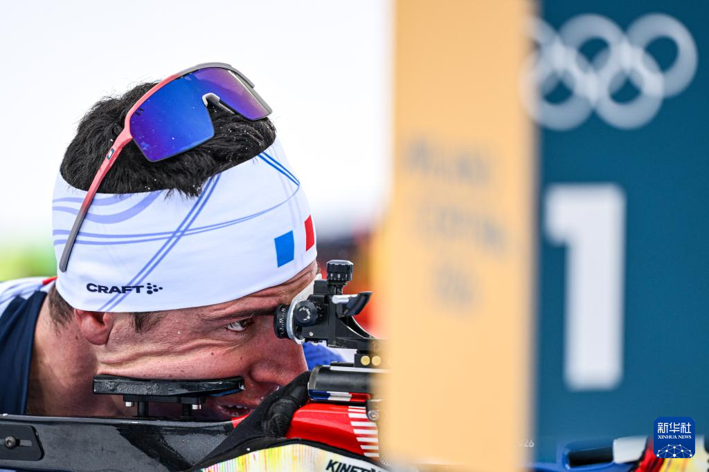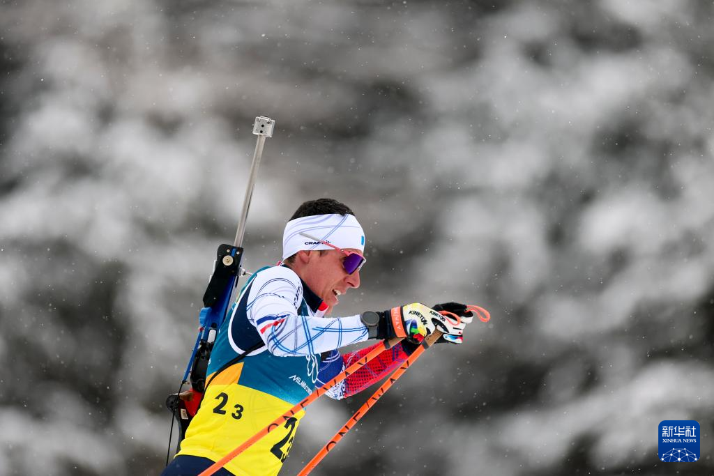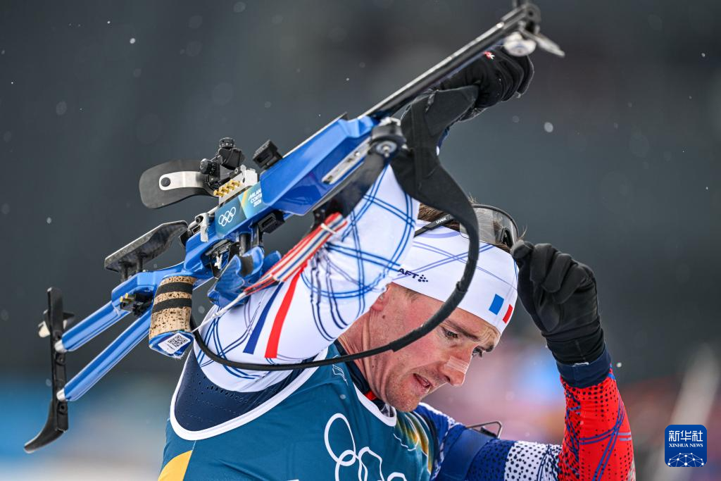 2月17日,法国队选手康坦·菲永·马耶在比赛中。