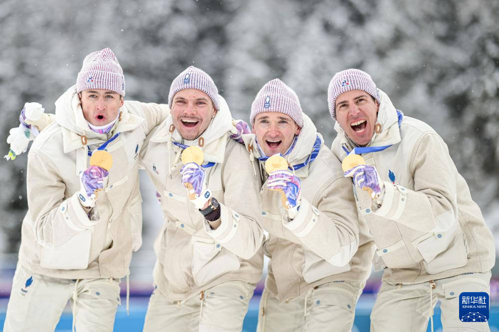 2月17日,冠军法国队在颁奖仪式上庆祝。