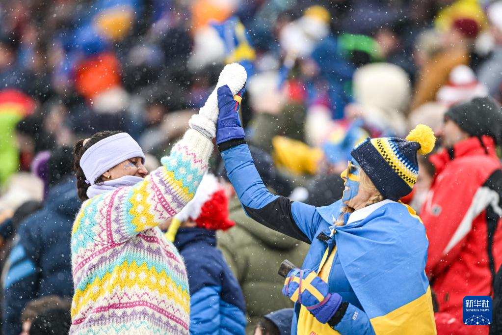 2月17日,瑞典观众在观赛时击掌庆祝。