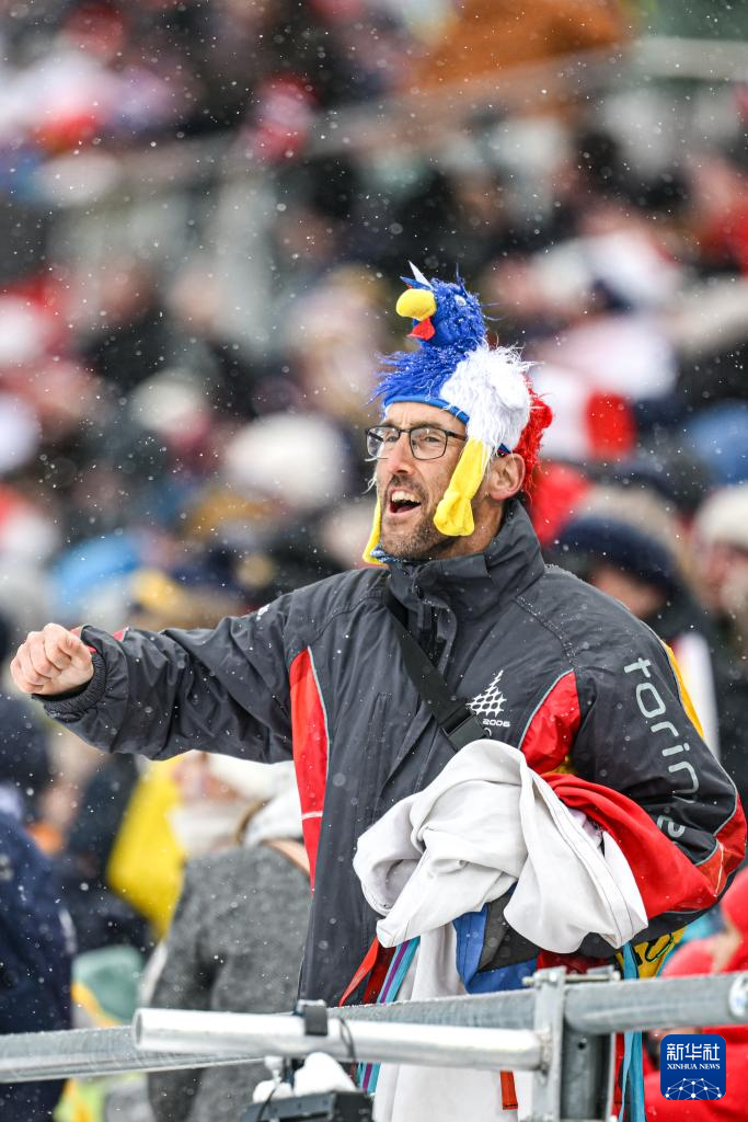 2月17日,法国观众在观赛时庆祝胜利。