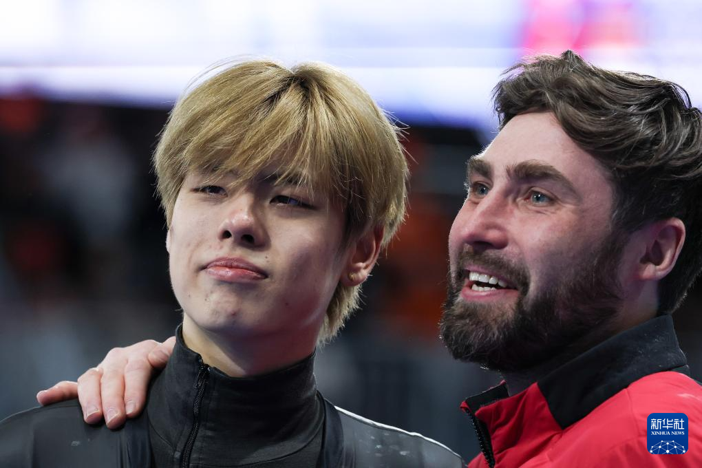 2月17日,中国队选手刘瀚彬(左)与主教练李琰在赛后。