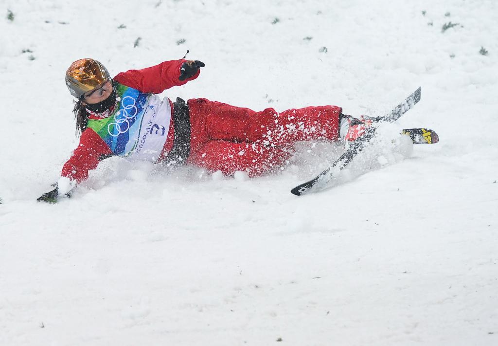 2010年2月24日,徐梦桃在温哥华冬奥会自由式滑雪女子空中技巧决赛中摔倒。新华社发(戚恒 摄)