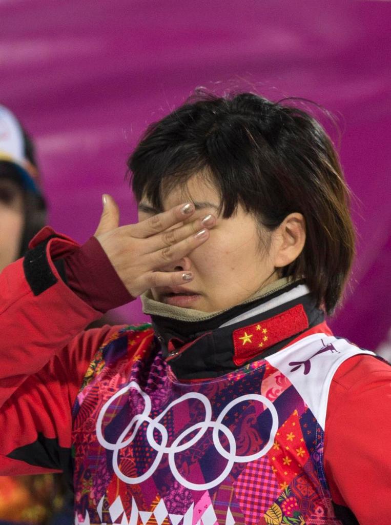 2010年2月24日,徐梦桃在温哥华冬奥会自由式滑雪女子空中技巧决赛后遗憾落泪。新华社发(戚恒 摄)