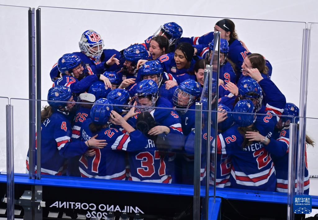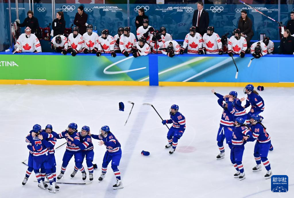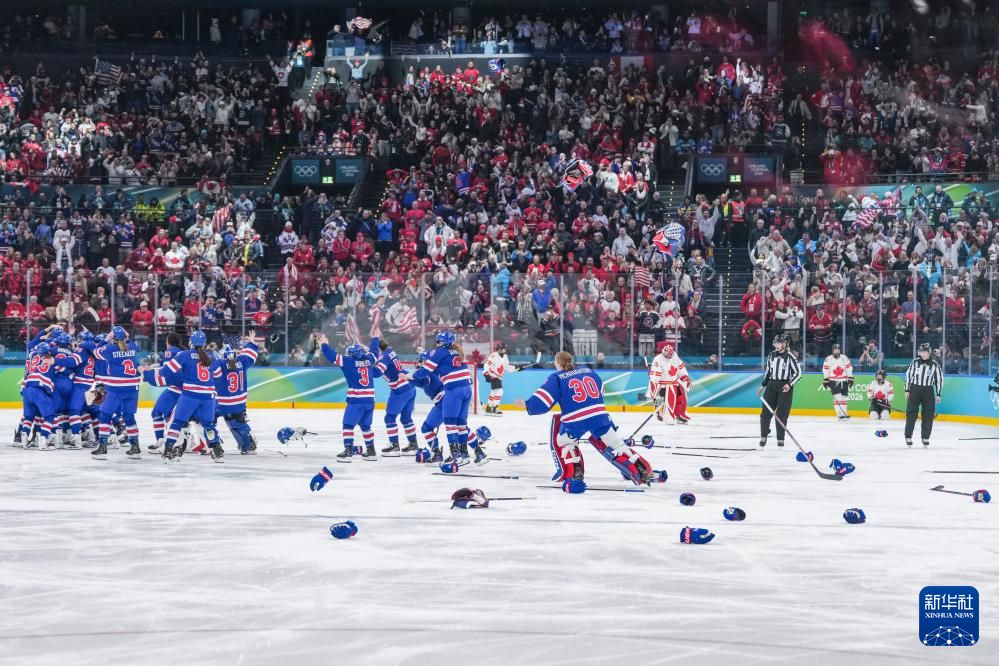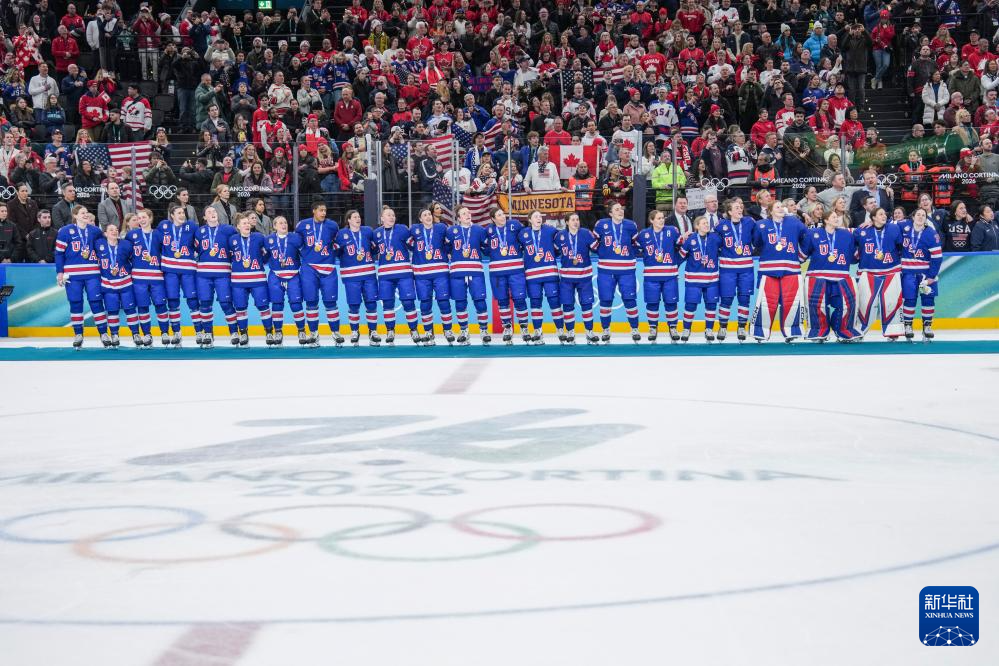 当地时间2月19日,米兰-科尔蒂纳冬奥会冰球项目女子金牌赛在意大利米兰举行,美国队2比1战胜加拿大队,夺得冠军。
